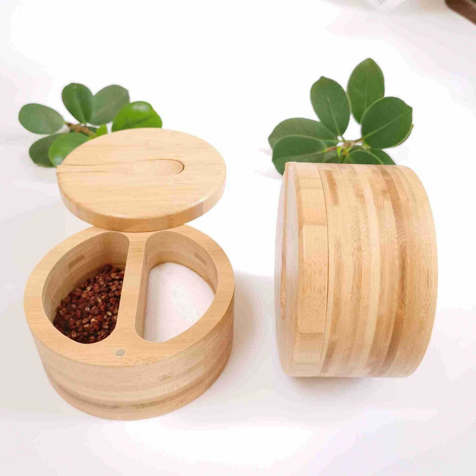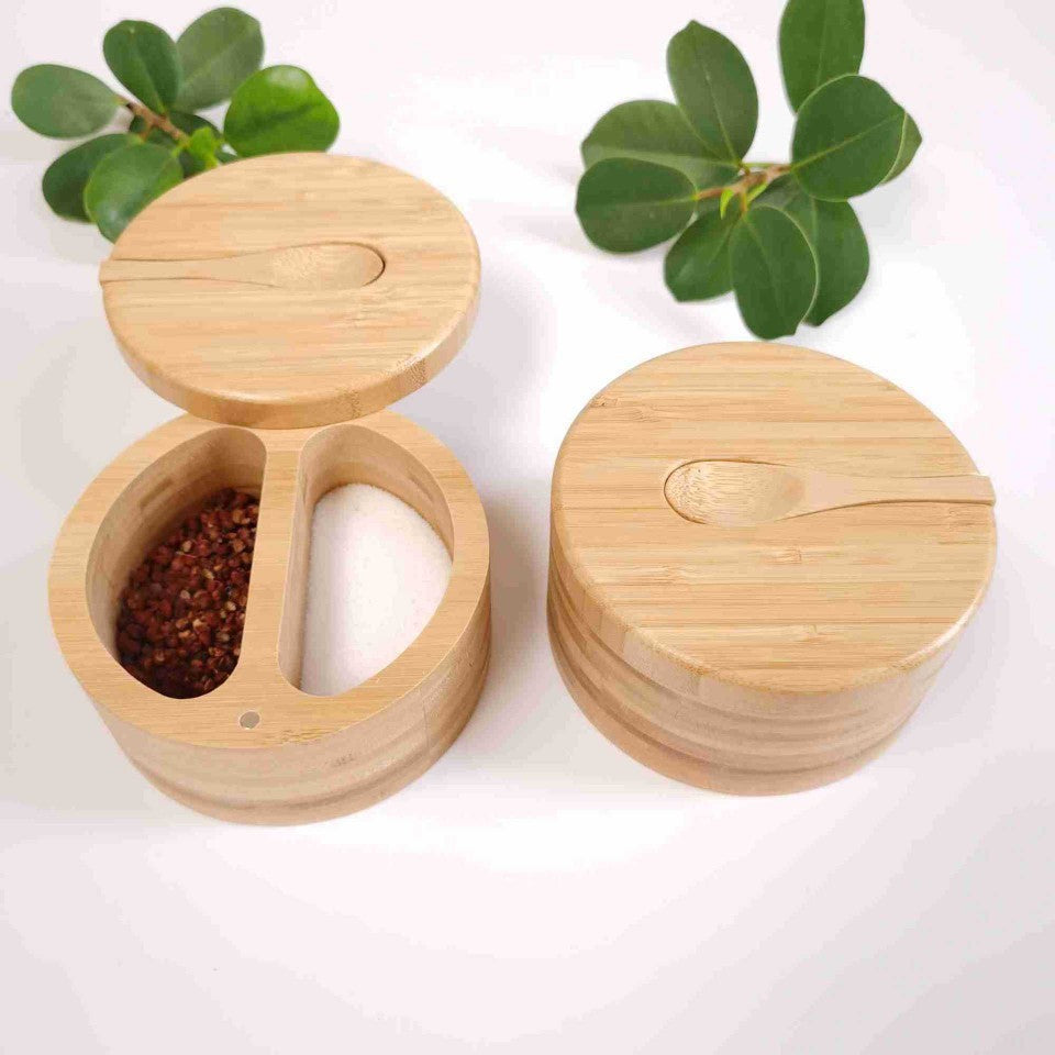 Pot d’assaisonnement en bambou à double compartiment